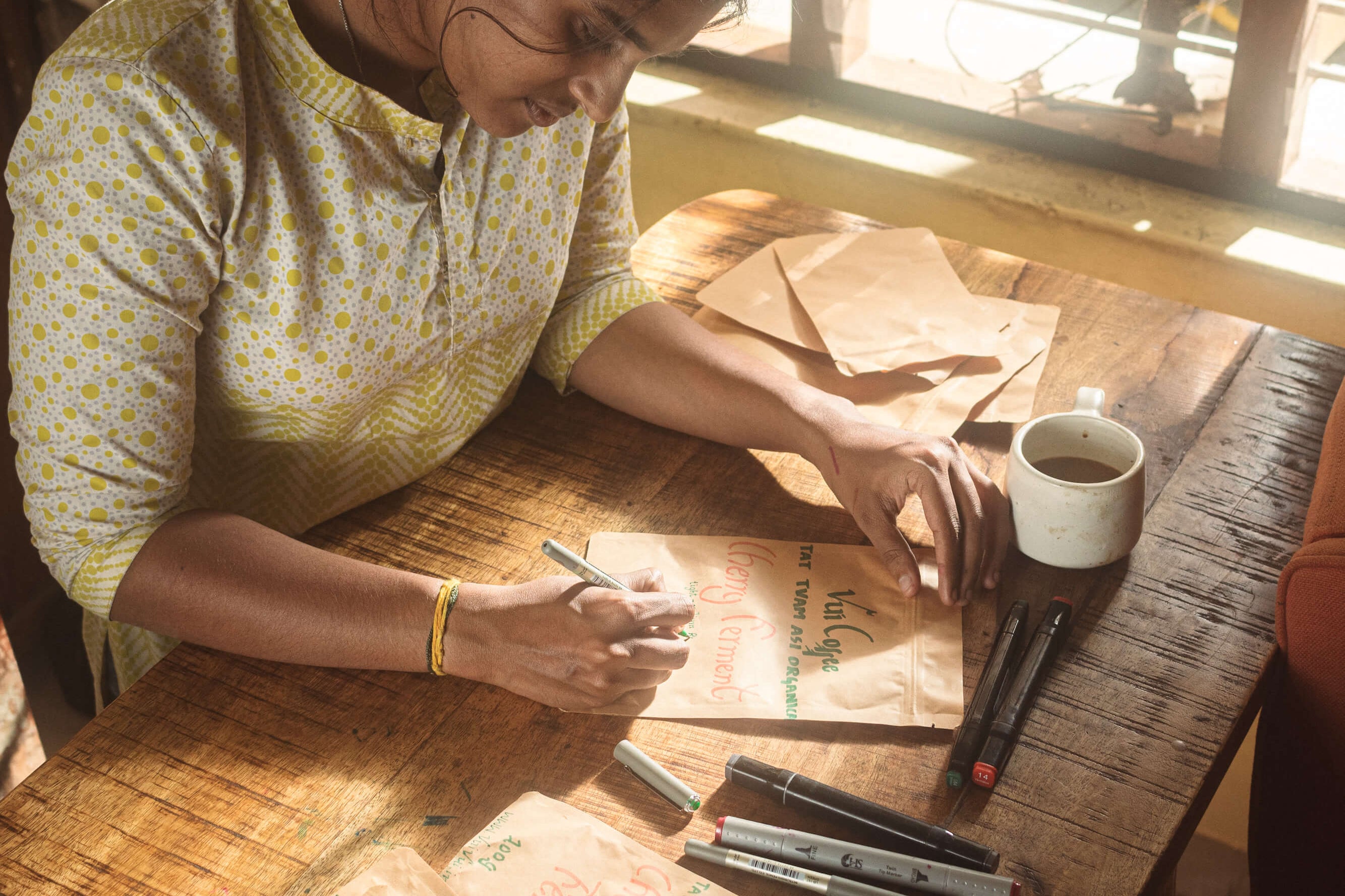 In early 2023, Dharuni joined our team. She plays the flute, Carnatic style, and also excels at Art and Calligraphy. She puts her Calligraphy talents to excellent use on the packs. She assists in roasting, and has a great palate to evaluate our coffees. Varsha and Dharuni do all our art work.