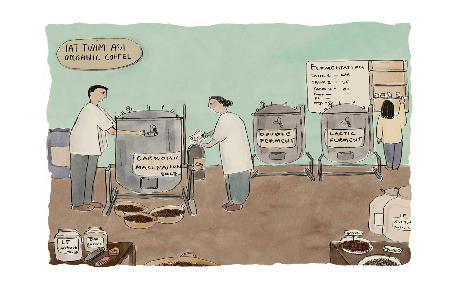 undone. This is most evident in their exquisite coffees from Anaerobic Fermentation. Meticulous record-keeping of pressure, temperature and pH makes it feel like a Science Lab, and the resulting flavours re-define ‘Special’ in Speciality Coffee.