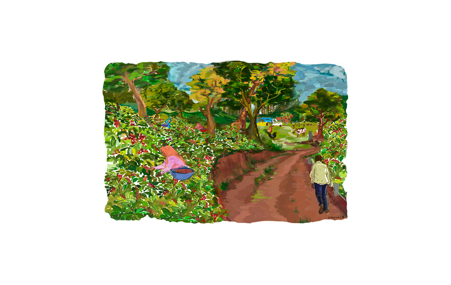 Perched at an altitude of 1200 – 1400 meters, Tat Tvam Asi farm spreads across a steep valley in the Baba Budangiri hills of Chikmagalur. Receiving the mild morning sun and 300 centimeters of rain, the coffee plants sit in the comforting shade from native jungle trees. They enjoy cool weather throughout the year, and heavy mist takes residence during the monsoons. All of this births some of the finest