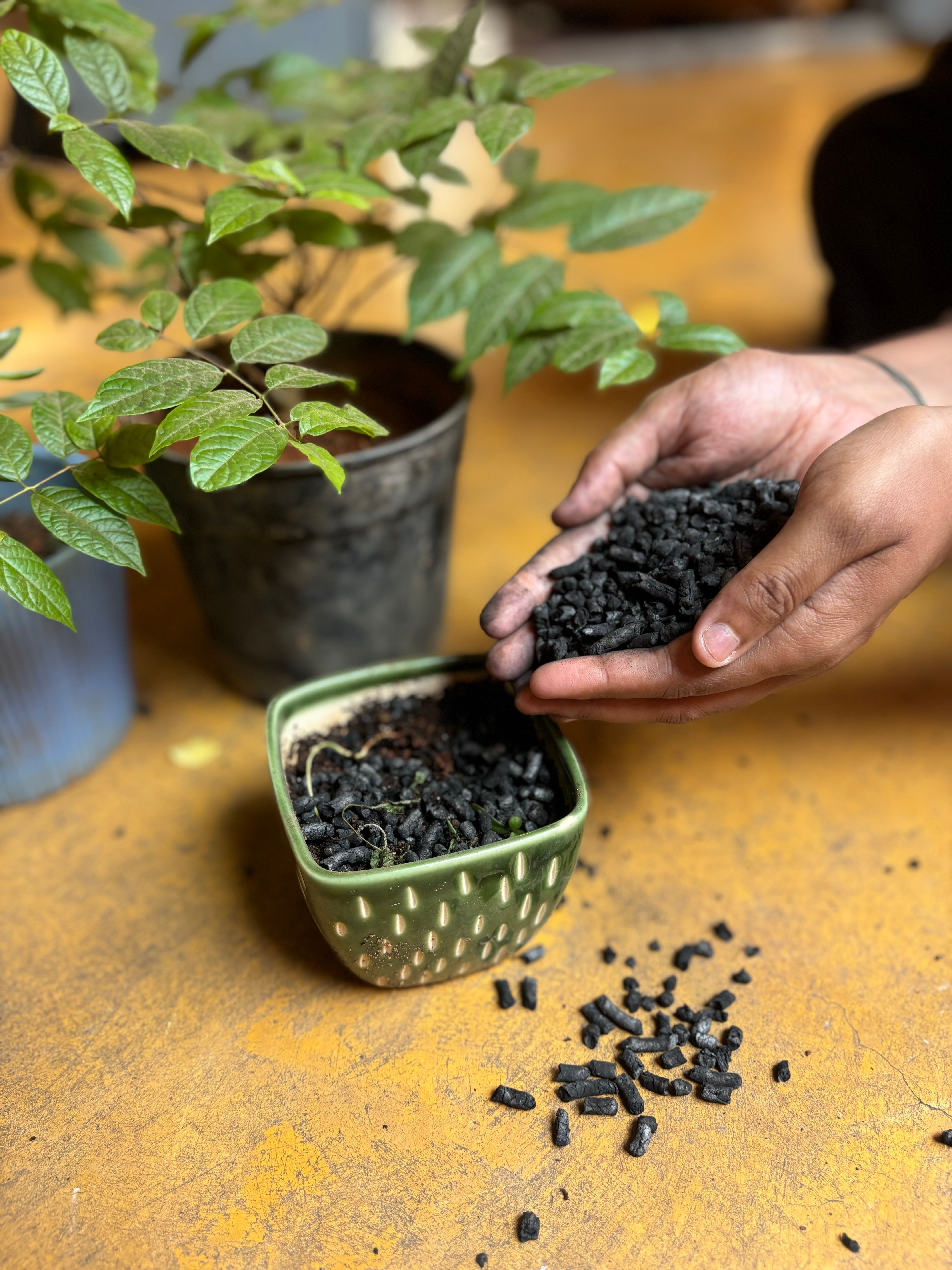 Biochar is a carbon-rich, natural soil conditioner. It is produced by heating plant-based biomass in an oxygen-limited environment.