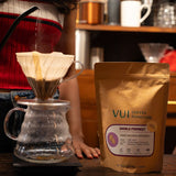 In addition to Lactobacilli, Yeast is used to ferment the coffee cherries. Our most special process yet, a pushing the boundaries on what coffees can taste like, while retaining the original essence. Rich, velvety mouth-feel, and a finish that is smooth as wild honey.