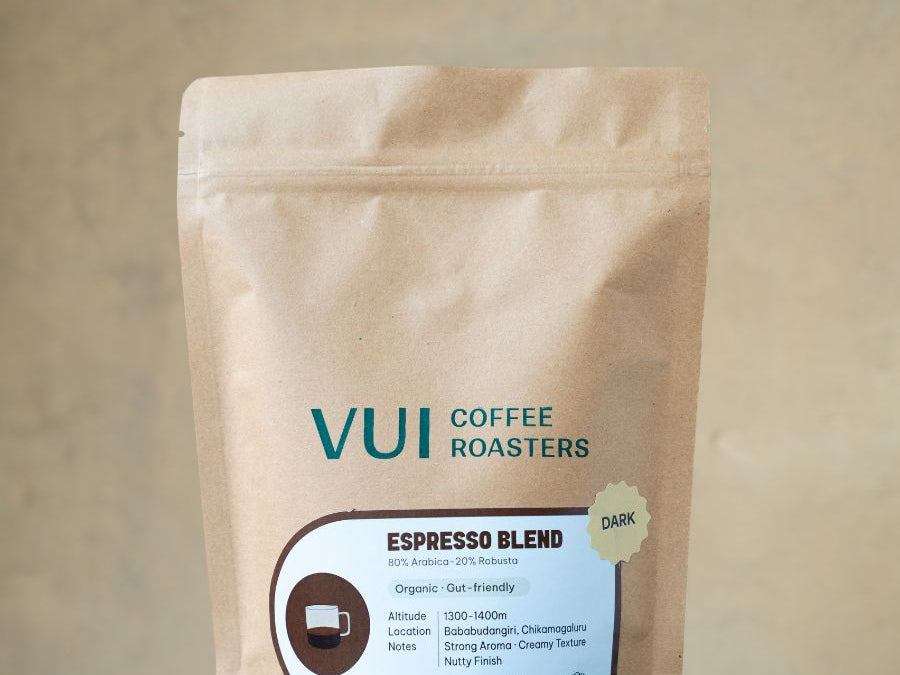 If we didn’t tell you, you may not detect the dash of Robusta here. On this spine of Robusta rests the dominant Washed Arabica. Intense aroma, creamy texture and a pleasant finish land in your cup of Espresso; consistently, and at high clarity.
