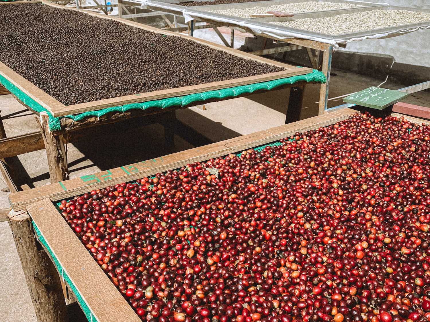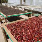 The ‘Naturals’ process involves drying the whole cherries – not too ripe, and not a hint of green. Uniformity of drying under the skin is the main challenge. Produces intense fruity notes, full of natural sweetness.